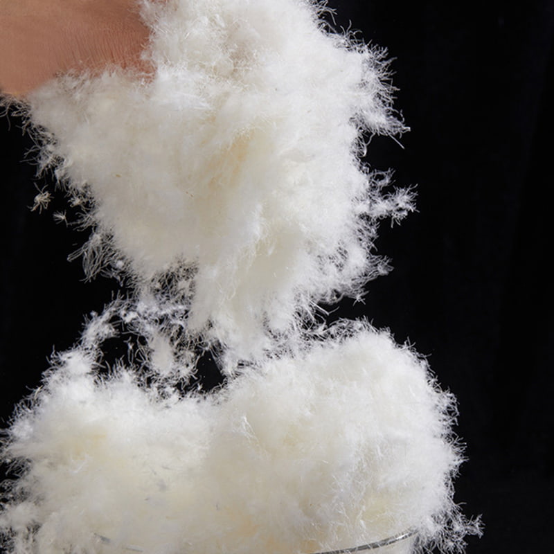 Ördeklerin karın, boyun ve kanatlar gibi doğal tüy üreten bölgelerinden seçilen kuş tüyü, ince kamış kedicik şeklinde olup, bulutlar gibi yumuşak ve kabarık bir his verir; Hassas bir şekilde orantılı pul pul tüylerle desteklenen bu yapı, çift katmanlı, sıcaklığı sabitleyen bir matris oluşturur. Doğal bir hayvan lifi olan kuş tüyünün top benzeri yapısı, akıllı bir solunum döngüsü oluşturan yüz milyonlarca mikro üçgen gözenekle yoğun bir şekilde kaplıdır. Vücut ısısı yükseldiğinde, lif ısıyı serbest bırakmak için doğal olarak esner ve ortam soğuduğunda ise sıcaklığı hapsetmek için sıkı bir şekilde büzülür. İnsan vücudunun dağıttığı ısıyı verimli bir şekilde geri dönüştürürken, soğuk havanın dış dünyadan girişini yalıtır ve 24 saat sabit sıcaklık koruması sağlar. Hafif ve fark edilmeyen bu ürün, ikinci bir cilt katmanı gibi vücuda uyum sağlayarak sıcaklık ve konforu kusursuz hale getirir.
